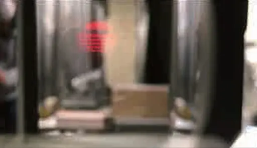 SLM-200を用いたホログラフィック・コンタクトレンズの原理確認実験。0.5m先に立体像を表示させているところ。赤く表示された文字が並んでいる。