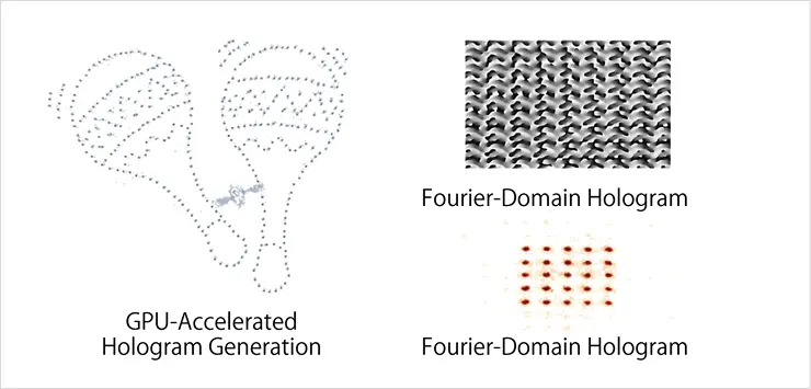 空間光変調器は、量子コンピュータを実現するための重要なコンポーネントとして活躍しています。例えば、光波面を形成、数百の個別に集束された光ピンセットビームの生成、振幅位相変調アルゴリズムの研究などに利用されています。